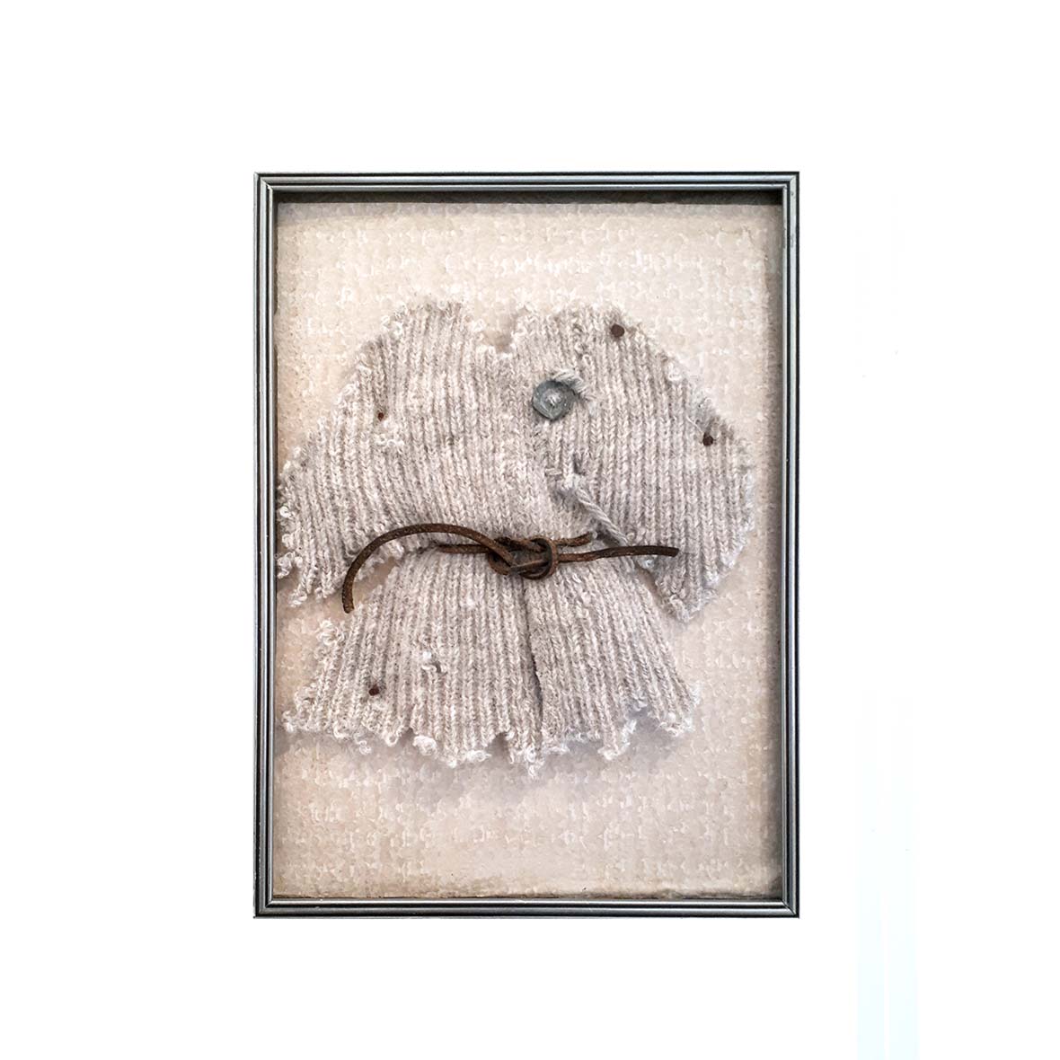 Material: fotoram, raggsocka, läderrem, knappar, spik.